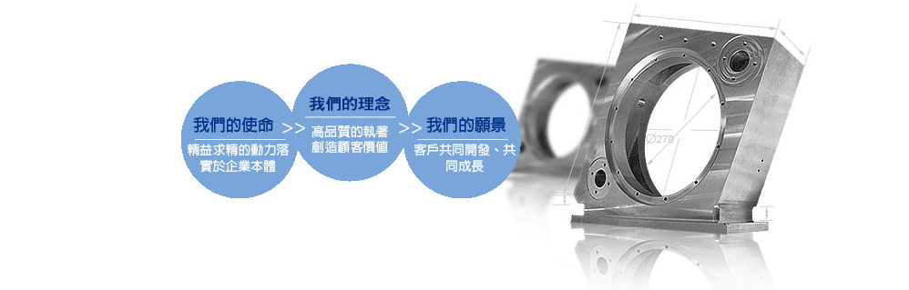 精燁科技深信「對高品質的執著,才能對顧客負責」。我們秉持追求品質、價格、交期之平衡點的生產體制,以「專業技術、堅持品管、持續改善、客戶滿意」為經營理念,視客戶為合作夥伴,以「製造高品質零件」為最高營運方針,來創造顧客價值,提升企業競爭力。
