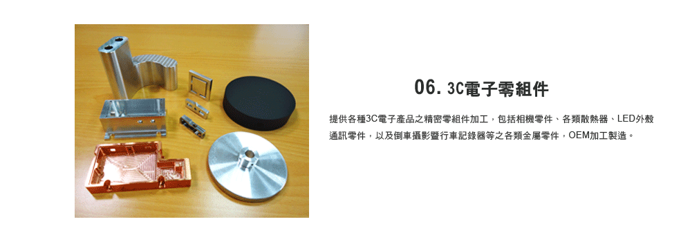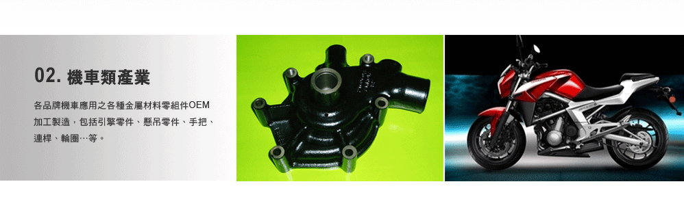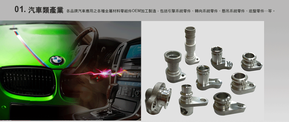 精燁科技在汽機車零件、工具機零組件、機械與空油壓零件、航太零件、醫療零件、光電零件…等多元產業應用之精密金屬零件OEM 加工製造領域,擁極豐富的加工製造技術與經驗,可提供高效率的OEM開發生產。